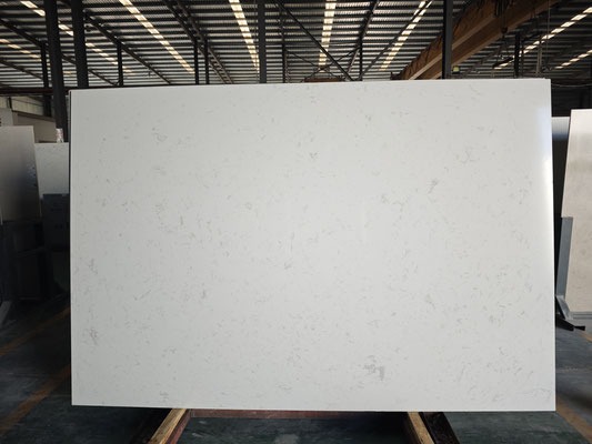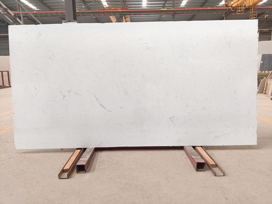 A refined engineered marble slab featuring a pure white base subtly detailed with delicate light grey veining. The soft, understated pattern gives the material a clean and elegant appearance, ideal for modern, minimalist, and timeless design aesthetics.